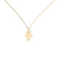 Minimalistický náhrdelník ALOve ze 14kt bílého, žlutého nebo růžového zlata, kterému dominuje symbolický přívěsek ruky (,,hamsa", ,,Ruka Fátimy") s diamantem. Luxusní šperk a ochranný talisman.