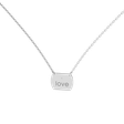 Luxusní šperk s puncem absolutní módnosti. To je minimalistický řetízkový náhrdelník ALOve z bílého, žlutého nebo růžového zlata s podélnou obdélníkovou plackou s nápisem zdobeným zářícím diamantem.