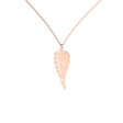 Náhrdelník z kolekce ALOve Angels z bílého, žlutého a růžového zlata s jemnou řetízkovou siluetou a symbolickým přívěskem ve tvaru andělských křídel s diamantem. Luxusní doplněk i ochranný talisman.