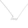Šperk plný lásky. Minimalistický náhrdelník z kolekce ALOve No Ordinary Words z bílého, žlutého nebo růžového zlata s výrazným nápisem Love, který zdobí třpytivý diamant.