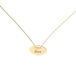 Nadčasový zlatý náhrdelník z kolekce ALOve Touch of Gold s jemnou řetízkovou siluetou, které dominuje přívěsek ve tvaru oválu s nápisem Love a efektně zasazeným diamantem nejvyšší kvality.