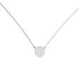 Stylově i tvarově minimalisticky řešený náhrdelník s jemnou řetízkovou siluetou, které dominuje přívěsek ve tvaru kruhu s efektním diamantem.