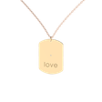 Luxusní šperk s puncem absolutní módnosti. To je minimalistický řetízkový náhrdelník ALOve z bílého, žlutého nebo růžového zlata s dominantní plackou s nápisem zdobeným zářícím diamantem.