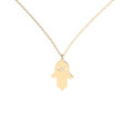 Minimalistický náhrdelník ALOve ze 14kt bílého, žlutého nebo růžového zlata, kterému dominuje symbolický přívěsek ruky (,,hamsa", ,,Ruka Fátimy") s diamantem. Luxusní šperk a ochranný talisman.