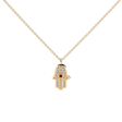Náhrdelník ALOve ze 14kt žlutého zlata, kterému dominuje symbolický přívěsek ruky (,,hamsa", ,,Ruka Fátimy") s brilianty a rubínem. Luxusní šperk a ochranný talisman současně.