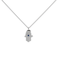 Náhrdelník ALOve ze 14kt bílého zlata, kterému dominuje symbolický přívěsek ruky (,,hamsa", ,,Ruka Fátimy") s brilianty a safírem. Luxusní šperk a ochranný talisman současně.