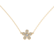 Diamantová květina nikdy nezvadne. Darujte ji v podobě luxusního náhrdelníku ze 14kt zlata s přívěskem kytičky osázené brilianty.