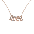 Efektní náhrdelník z růžového zlata, kterému dominuje třpitivý briliantový nápis love. Výrazný šperk, který se řídí žhavými módními trendy, které nosí i světové celebrity.
