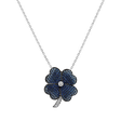 Přívěsek s řetízkem z 18kt bílého a černého zlata s diamanty a safírem, který je mistrovským dílem řemeslné dovednosti. Tento šperk je symbolem toho, že nekonečné možnosti jsou v dosahu těch, kteří si troufnou snít velké sny. Šperk je součástí kolekce Flowers.
