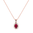 Nahlédněte do královské šperkovnice s kolekcí ALOve Princess. Ozdobte svůj dekolt přívěskem ze 14karátového růžového zlata, kterému dominuje rubín lemovaný zářivými diamanty. Přívěsek se prodává samostatně bez řetízku.