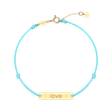 Decentní náramek ALOve s barevnou šňůrkou a zlatou destičkou s láskyplným nápisem Love a diamantem je stylovým doplňkem, který už nebudete chtít sundat.