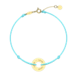 Minimalistický náramek z kolekce ALOve Touch of Gold s barevnou šňůrkou a kulatým přívěskem z bílého, žlutého nebo růžového zlata s nápisy Love a diamantem. Stylový šperk pro každodenní nošení.