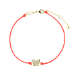 Něžný náramek z kolekce ALOve Tenderness s barevnou šňůrkou propojenou přívěskem ve tvaru motýlka ze 14kt bílého, žlutého nebo růžového zlata s diamanty je ideálním dárkem pro každou příležitost.