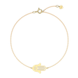 Originálně řešený zlatý náramek ALOve s jemnou řetízkovou siluetou, která je propojena rukou s jasně definovanými konturami zahalenými do jiskrného třpytu diamantu nejvyšší kvality.