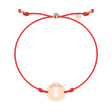 Náramek z kolekce Family tvoří červená šňůrka a rozkošný přívěsek holčičky nebo chlapečka ze 14kt žlutého, růžového nebo bílého zlata s třpytivým diamantem.