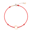 Trendy náramek z kolekce ALOve Love Message s barevnou šňůrkou a kulatým přívěskem z bílého, žlutého nebo růžového zlata s otvorem ve tvaru srdce si zamiluje každá žena. Náramek zdobí třpytivý diamant.
