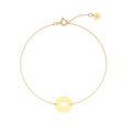 Originální luxusní náramek nejen pro zamilované. Šperk ze žlutého zlata s jemnou řetízkovou siluetou, který propojuje dominantu šperku s otvorem ve tvaru srdce.