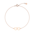 Vyznejte lásku šperkem. Náramek ALOve z bílého, žlutého a růžového zlata s jemnou řetízkovou siluetou propojuje dominantu šperku s otvorem ve tvaru spojených srdcí s diamantem.