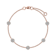 Tento náramek z 14kt růžového zlata s diamanty je jako kruhový tanec vášně a elegance. Jeho design je tak jednoduchý, ale zároveň tak výrazný, že vás okouzlí na první pohled. Buďte zářící hvězdou ve světě luxusu. Šperk je součástí kolekce Mirage.
