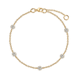 Tento náramek z 14kt žlutého zlata s diamanty je jako kruhový tanec vášně a elegance. Jeho design je tak jednoduchý, ale zároveň tak výrazný, že vás okouzlí na první pohled. Buďte zářící hvězdou ve světě luxusu. Šperk je součástí kolekce Mirage.