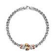 Každý paprsek světla se zdá jasnější, když jej odrazí tento nádherný náramek z 14kt bílého, růžového a žlutého zlata s diamanty. Jeden šperk - tisíc momentů neskonalého třpytu. Šperk je součástí kolekce Essential.