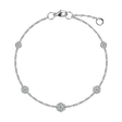 Tento náramek z 14kt bílého zlata s diamanty je jako kruhový tanec vášně a elegance. Jeho design je tak jednoduchý, ale zároveň tak výrazný, že vás okouzlí na první pohled. Buďte zářící hvězdou ve světě luxusu. Šperk je součástí kolekce Mirage.