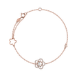 Tento náramek z 18kt růžového zlata osazený diamanty a perletí je jako záhadný večerní příběh plný tajemství a kouzla. Jeho jedinečný design je symbolem vnitřní síly a nekončící elegance. Šperk je součástí kolekce Flowers.