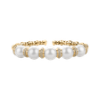 Nádherný náramek z 18kt žlutého zlata s diamanty a sladkovodní bílou perlou je kousek uměleckého díla. Tento šperk byl navržen tak, aby svému nositeli zajistil obdiv a úžas. Bílá perla dodává diamantovému šperku záhadnost a mystiku, která okouzlí každého. Šperk je součástí kolekce Ocean & River.