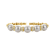 Náramek 18kt žlutého zlata s diamanty a sladkovodní bílou perlou symbolizující krásu a čistotu. Jeho svůdný třpyt je jako oslava úspěchu a elegance, ideální pro ty, kteří si cení rafinovanosti a stylu. Šperk je součástí kolekce Ocean & River.
