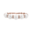 Nádherný náramek z 18kt růžového zlata s diamanty a sladkovodní bílou perlou je kousek uměleckého díla. Tento šperk byl navržen tak, aby svému nositeli zajistil obdiv a úžas. Bílá perla dodává diamantovému šperku záhadnost a mystiku, která okouzlí každého. Šperk je součástí kolekce Ocean & River.