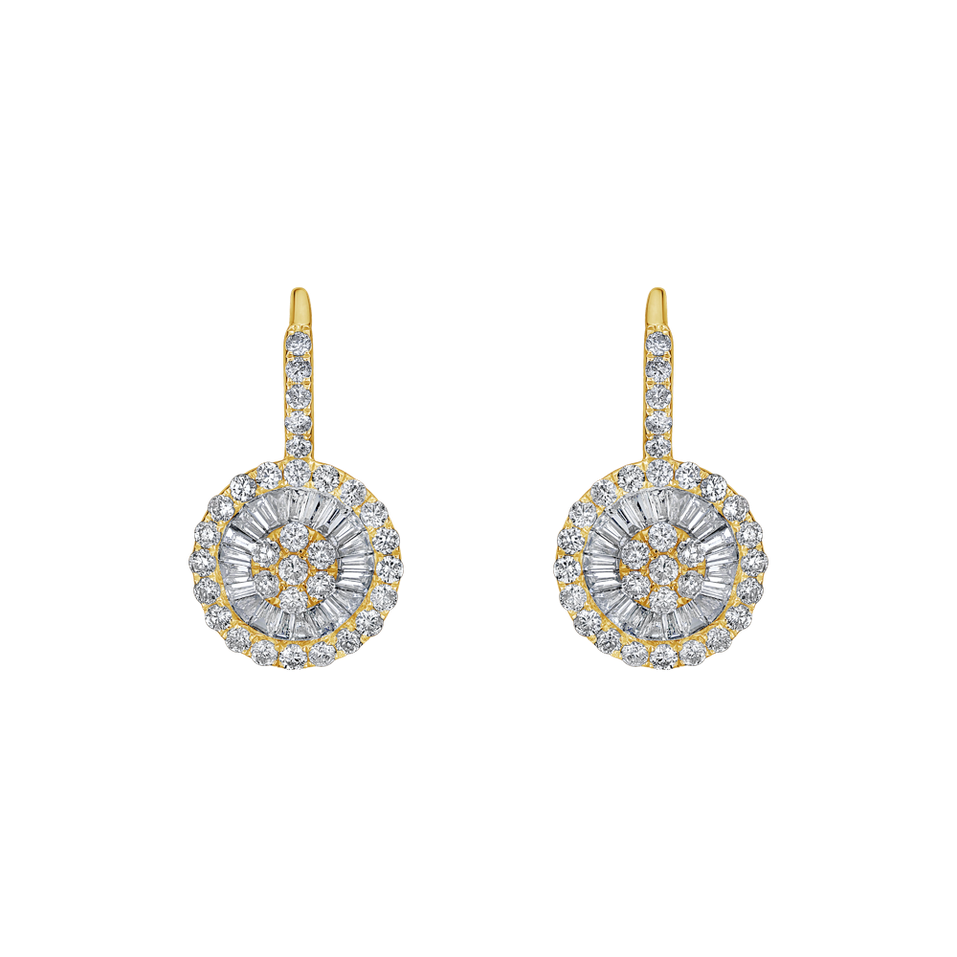 Náušnice z 18kt žlutého zlata osvětlené září diamanty jsou uměleckým dílem. Jejich jemný a elegantní design vyzařuje luxus a exkluzivitu.
