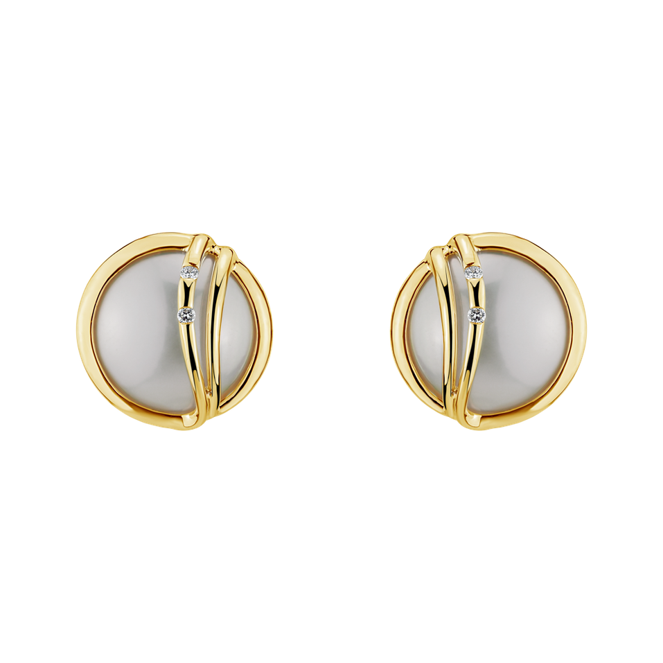 Elegantní náušnice s 14kt žlutým zlatem, diamantem a mořskou bílou perlou. Dokonalý doplněk pro každou příležitost k úspěchu. Šperk je součástí kolekce Ocean & River.