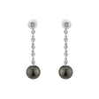 Odvaha a něžnost vyzařují z těchto náušnic z 18kt bílého zlata s diamanty a mořskou černou perlou, která ukrývá příběhy nefalšované ženskosti. Šperk je součástí kolekce Ocean & River.