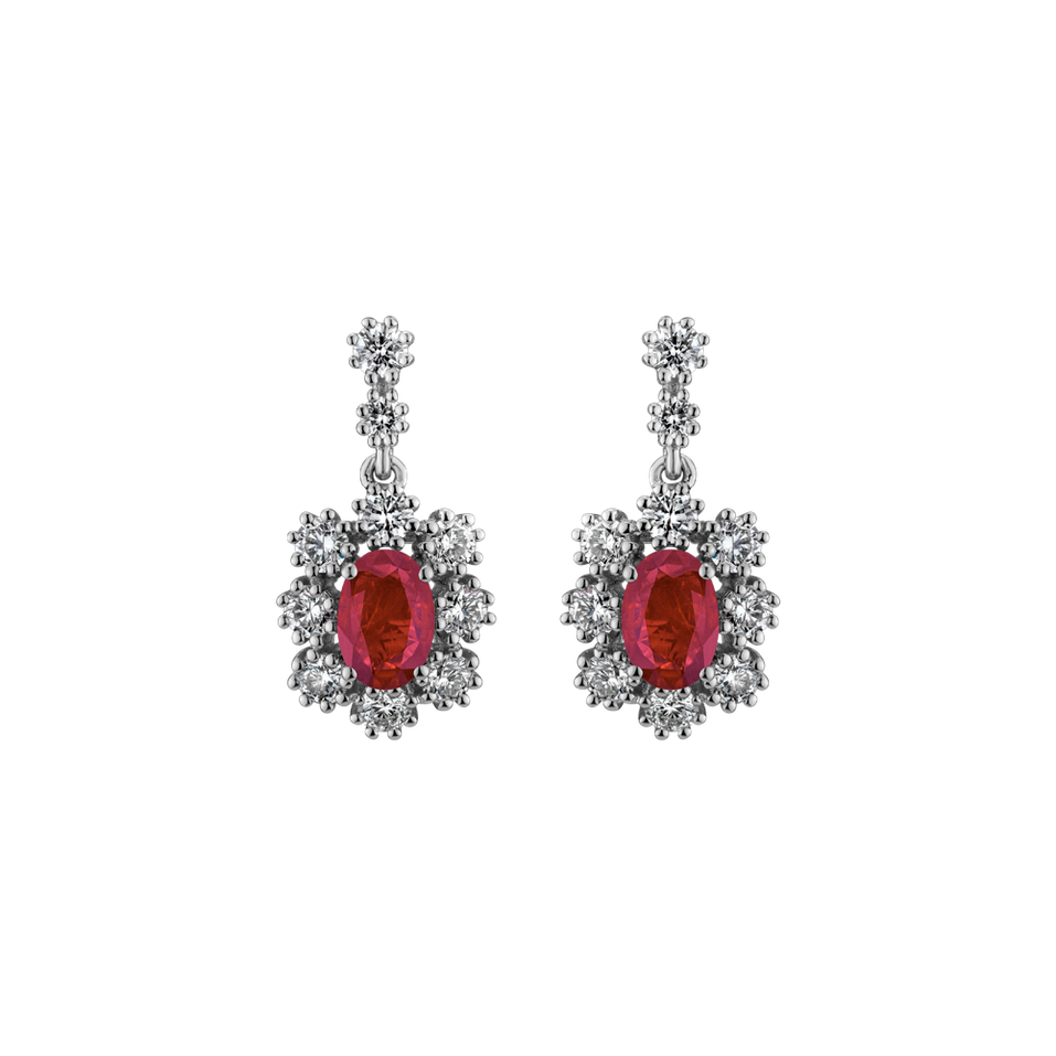 Křehkost a síla se snoubí v těchto náušnicích z 18kt bílého zlata s diamanty a dokonalým rubínem - odvážný příspěvek k vaší nekonečné kráse. Šperk je součástí kolekce Diana.