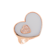 Tento prsten z 18kt růžového zlata s diamanty a achátem je svědectvím hlubokých citů a unikátního stylu, který vás nikdy nezradí. Jeho nadčasový design a luxusní krása z něj činí nejen elegantní šperk, ale i věrného společníka na cestě vašeho života. Šperk je součástí kolekce Hearts.