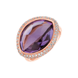 Prsten 18kt růžové zlato s diamanty a ametystem brazil je jako poklad ztraceného království. Jeho třpytivé diamanty a vzácný ametyst brazil symbolizují luxus, moc a lákavou krásu. Šperk je součástí kolekce Blossoms.