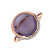 Ametyst brazil a preciznost. Prsten z 18kt růžového zlata s diamanty a ametystem brazil je mistrovským dílem ruční práce a ozdobou pro ty, kteří znají hodnotu pravé krásy a síly. Šperk je součástí kolekce Blossoms.