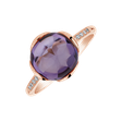 Prsten z 18kt růžového zlata s diamanty a ametystem brazil je jako jiskra věčného plamene - plný energie a síly. Tento klenot je určen pro ty, kteří hledají v životě něco neobyčejného. Šperk je součástí kolekce Blossoms.