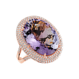 Jemná krása tohoto prstenu z 18kt růžového zlata s diamanty a ametystem pink je oslavou životních úspěchů. Jeho nepřekonatelný lesk a dokonalý vzhled připomínají nehasnoucí touhu po dosažení vašich snů. Šperk je součástí kolekce Fantasy.