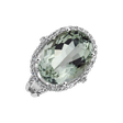 Tento prsten z 18kt bílého zlata s diamanty a ametystem green je jako věčný příslib štěstí. Jeho jemný design a třpyt diamantů jsou jako jiskřičky na nebi, které září jen pro vás. Vaše šťastná hvězda, která zůstane navždy. Šperk je součástí kolekce Fantasy.