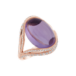 Tento prsten z 14kt růžového zlata s diamanty a ametystem brazil je jako dílo umění. Každý kámen, pečlivě vybraný a vsazený, vypráví příběh elegance a luxusu. Šperk je součástí kolekce Blossoms.