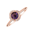 Prsten 18kt růžové zlato s diamanty a ametystem african je jako poklad ztraceného království. Jeho třpytivé diamanty a vzácný ametyst african symbolizují luxus, moc a lákavou krásu. Šperk je součástí kolekce Blossoms.