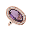 Zářivě krásný prsten z 18kt růžového zlata, doplněný diamanty a srdce hřejícím ametystem brazil, je odkazem na vášnivé okamžiky, které stojí za to si připomínat. Šperk je součástí kolekce Fantasy.