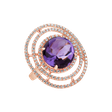 Tento prsten z 18kt růžového zlata s diamanty a ametystem brazil je jako věčný příslib štěstí. Jeho jemný design a třpyt diamantů jsou jako jiskřičky na nebi, které září jen pro vás. Vaše šťastná hvězda, která zůstane navždy. Šperk je součástí kolekce Blossoms.