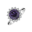 Zářivě krásný prsten z 14kt bílého zlata, doplněný diamanty a ametystem african, je odkazem na vášnivé okamžiky, které stojí za to si připomínat. Šperk je součástí kolekce Starlet.