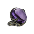 Prsten z 18kt bílého a černého zlata s diamanty a ametystem brazil, který se může pyštit svou dokonalostí a pečlivě vybranými kameny, je symbolickou pečetí věčné elegance. Šperk je součástí kolekce Blossoms.