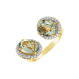 Tento prsten z 18kt žlutého a bílého zlata, v němž se snoubí diamanty s krásným ametystem green, je svědectvím hlubokých citů a unikátního stylu, který vás nikdy nezradí. Jeho nadčasový design a luxusní krása z něj činí nejen elegantní šperk, ale i věrného společníka na cestě vašeho života. Šperk je součástí kolekce Fantasy.