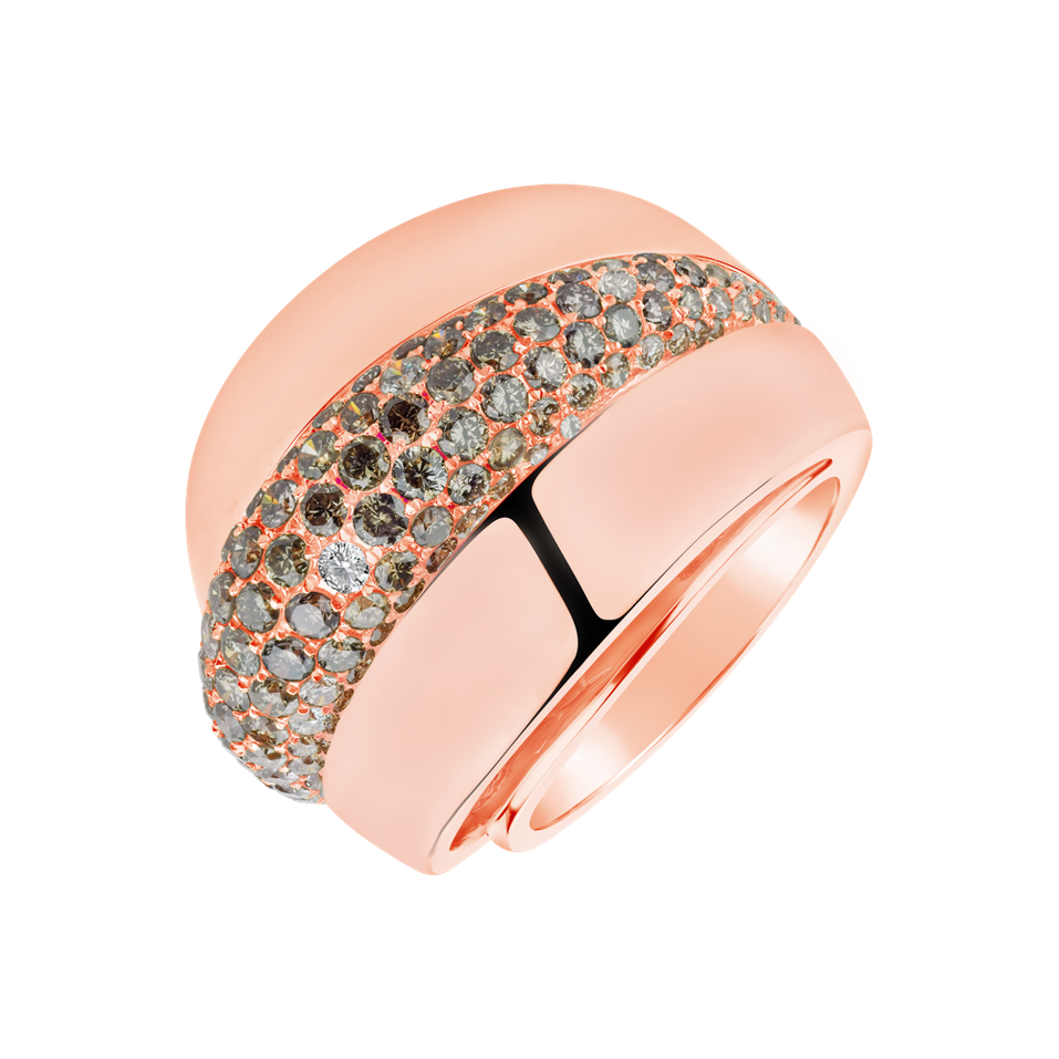 Tento prsten z 18kt růžového zlata zdobený hnědými diamanty je jako tajemné noční nebe. Jeho krása a lesk vás zavedou do magického světa luxusu a romantiky. Ponořte se do jeho tajemství. Šperk je součástí kolekce Charming.