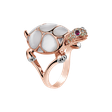 Prsten s bílými a hnědými diamanty, rubíny a perletí Turtle Joy