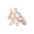 Prsten s bílými a hnědými diamanty, rubíny a perletí Turtle Love